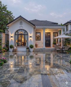 Granite Bình Định: Các hạt tinh thể đều màu, tạo cảm giác sáng sủa cho sân vườn. Để lát sân, bạn nên chọn loại mặt khò hoặc mặt phun cát để tránh trơn trượt khi trời mưa.