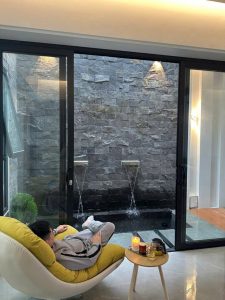 🔹 Ốp tường giếng trời, khu BBQ ngoài trời