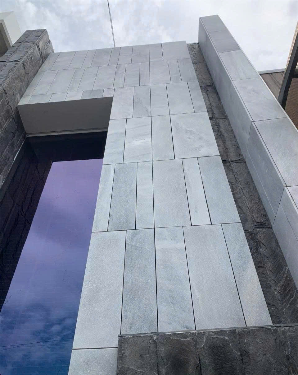 Đá trắng xám mài là một trong những lựa chọn phổ biến và tinh tế nhất hiện nay cho việc ốp lát tường, đặc biệt là các mảng tường trang trí