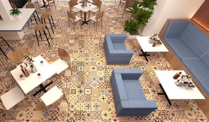 Dùng gạch bông cho các công trình cà phê, quán ăn