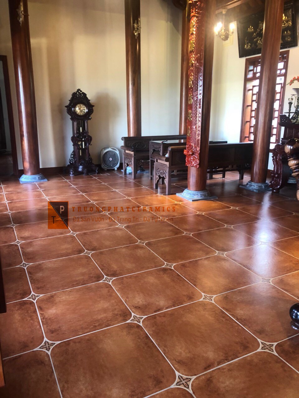 Lát nền phòng thờ với gam màu ấm vàng cổ kính mang đậm sự cổ kính, trang nghiêm, tạo nên 1 không gian tĩnh lặng rất phù hợp để ốp lát trong phòng thờ. Đặc biệt đây là mẫu gạch lát phòng thờ được làm từ đá tự nhiên được khai thác và sản xuất trong nước nên còn mang yếu tố tâm linh thuần việt rất ý nghĩa phù hợp với những không gian thờ tịnh thiêng liêng.
