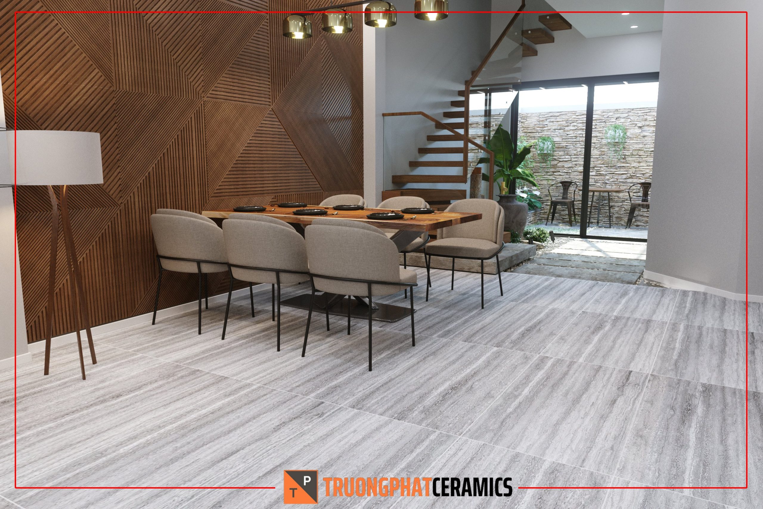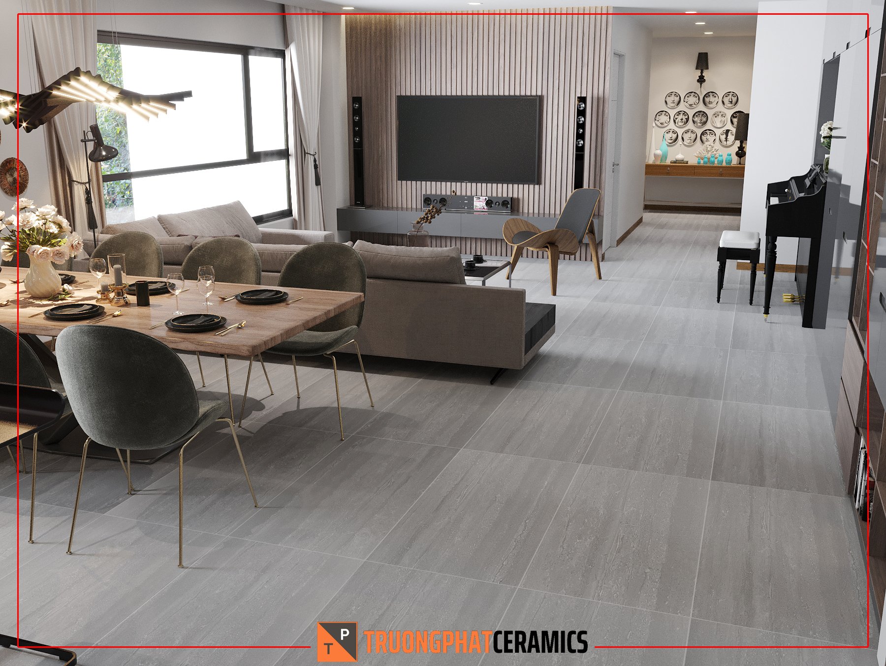 + Nếu phòng khách > 15m2, nên chọn gạch lát nền kích thước lớn hơn: 60x120cm, 80x80cm.