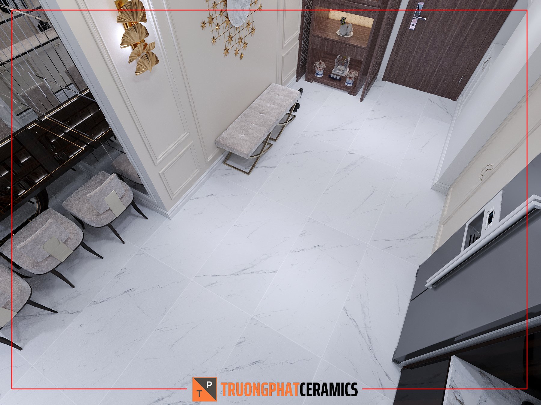 Tuy nhiên, bạn cũng cần phải chú ý tới sự hài hòa màu tường với thiết kế nội thất. Thường chọn kích thước gạch lát nền trung bình như: 30×30, 40×40, 60×60 cm.
